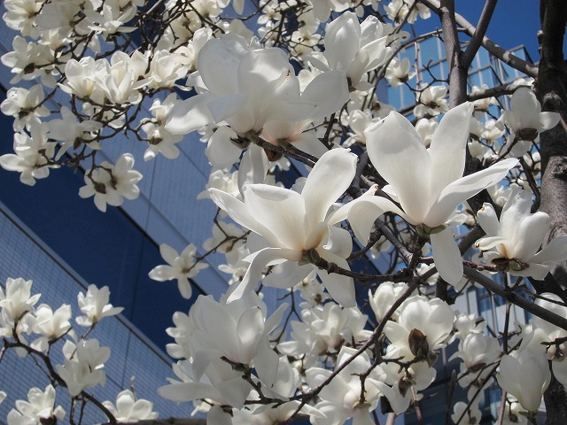 ハクモクレンは、毎年桜の時期より少し前に満開を迎えます。
