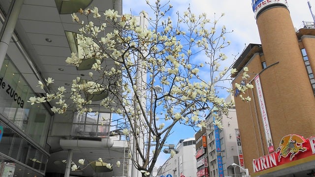 現在は、広島市内中央通りの街路樹のハクモクレンが、ちょうど満開ですね♪