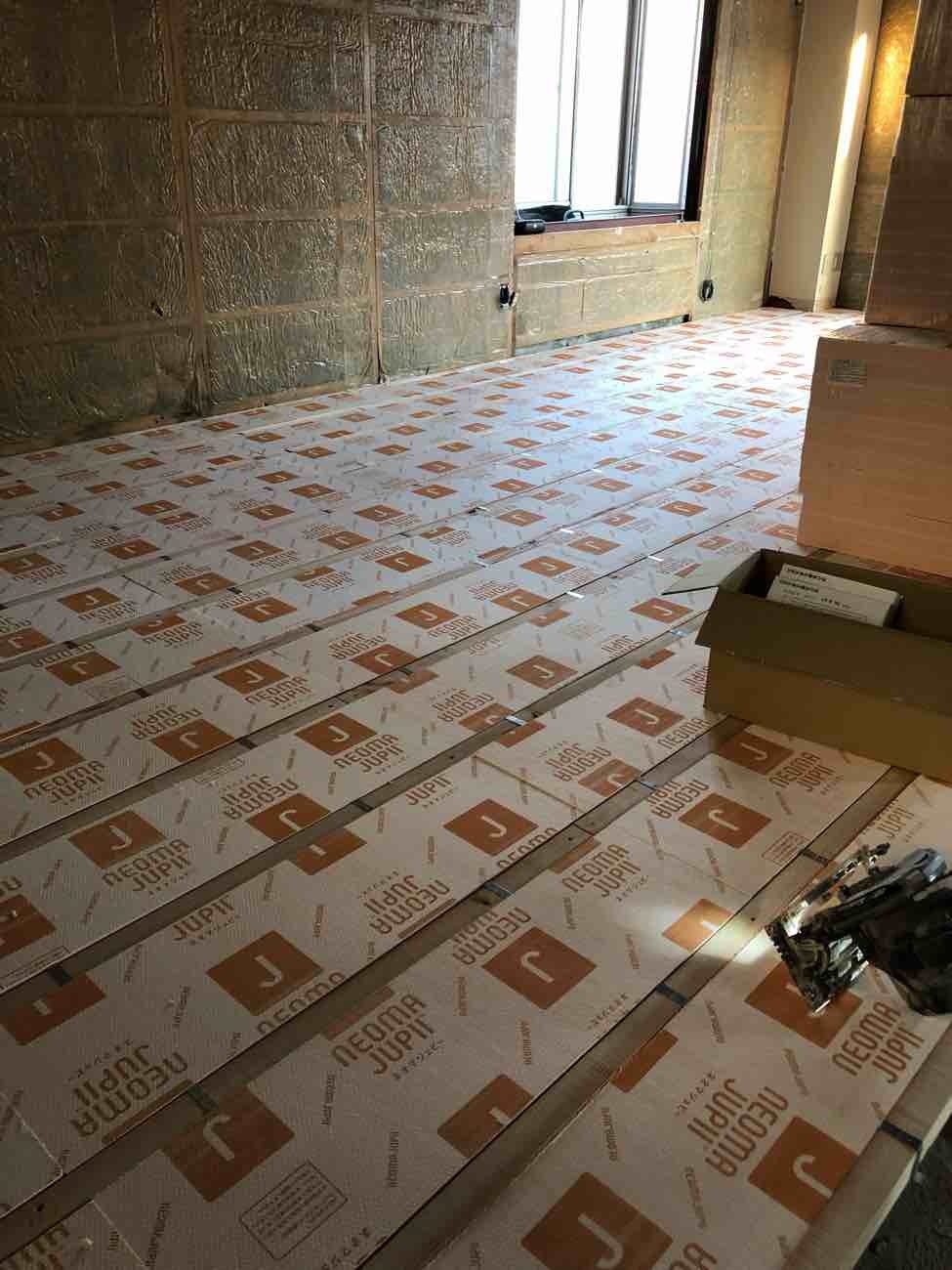 断熱材を床にビッシリ入れて床下からの冷気をシャットダウン、浴室もこれで温かいですね。