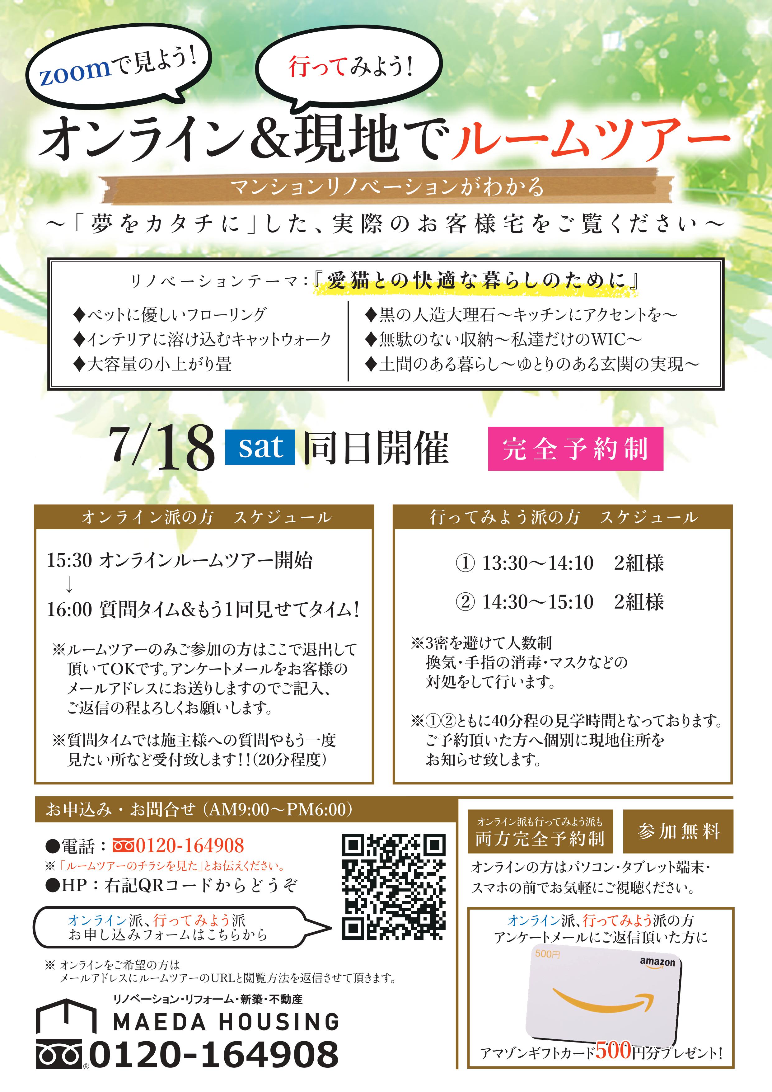 午前10時半~ マンションルームツアー、午後14時~ 戸建てルームツアーです!