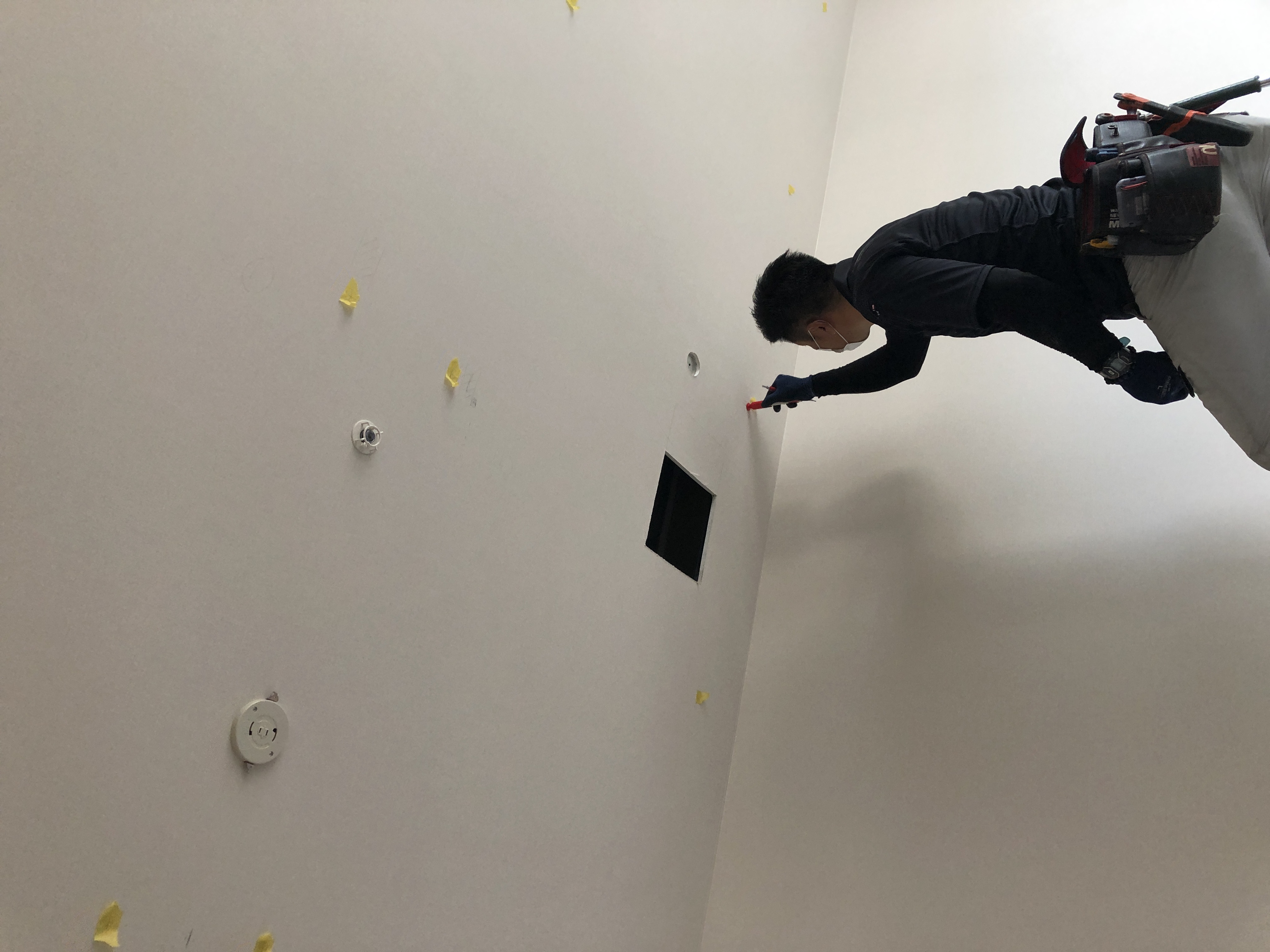 施主様に位置関係をマスキングテープで事前確認を取り穴あけ作業へ移ります。