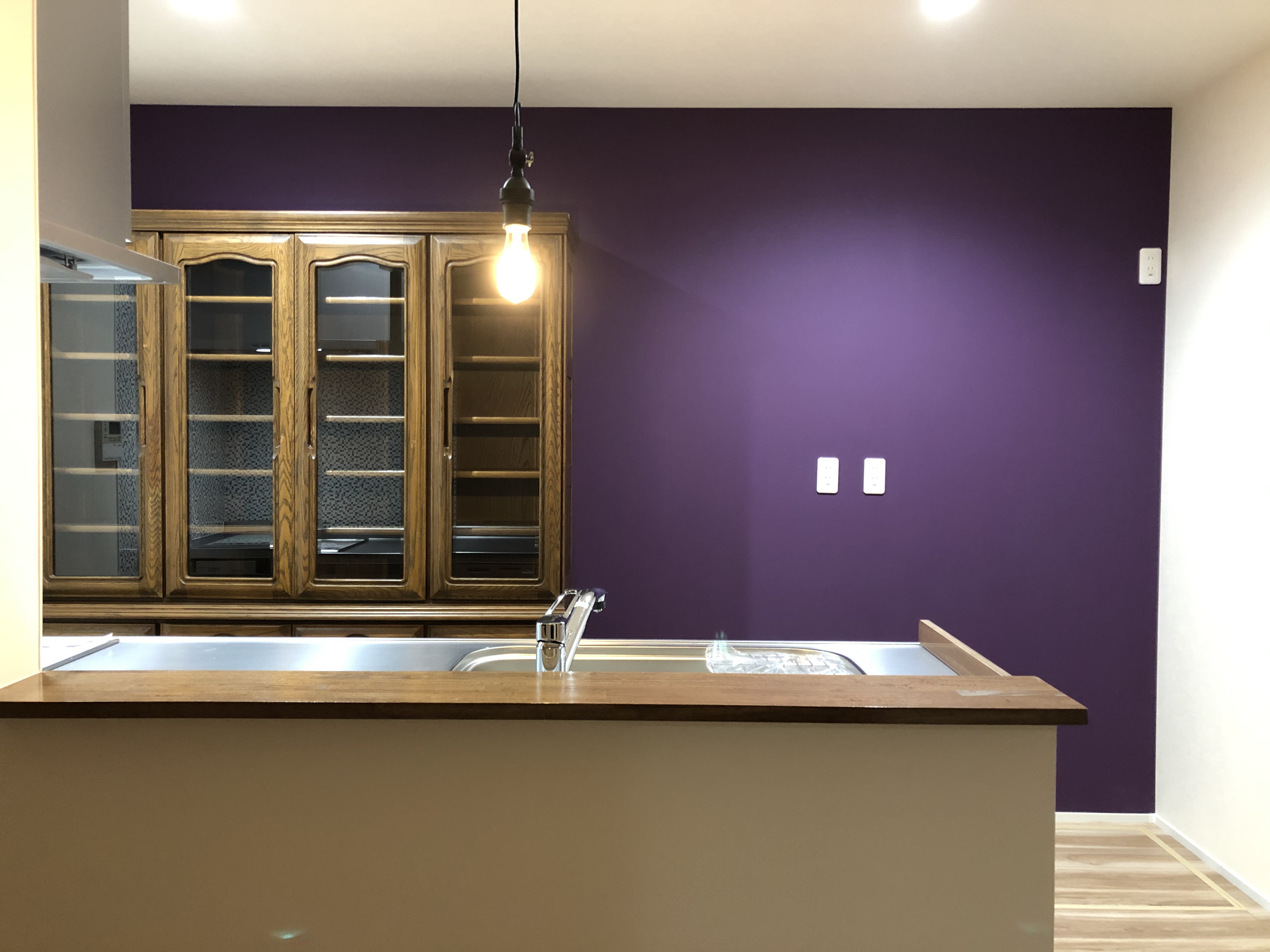 キッチンはお母様が好きな紫 家具との相性もバッチシです。