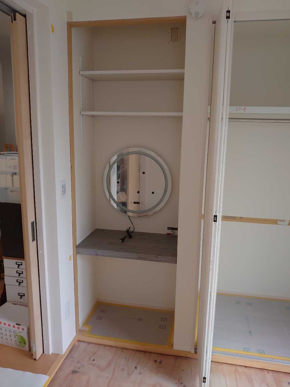 と言っていただき、クローゼットと鏡台をあわせた工事を行いました。