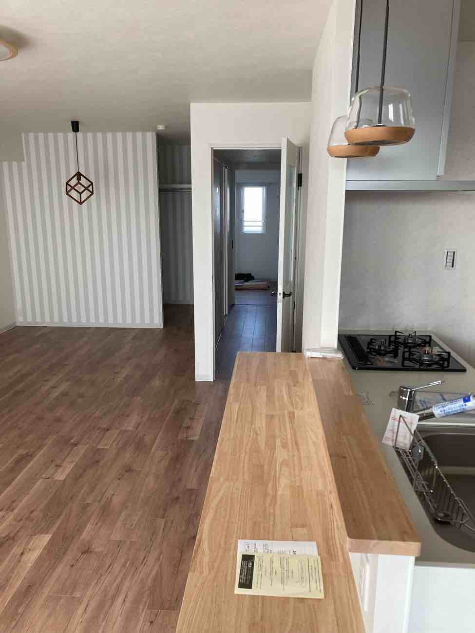 和室とリビングを繋げてリビングを広げて、キッチンも対面キッチンにしました。