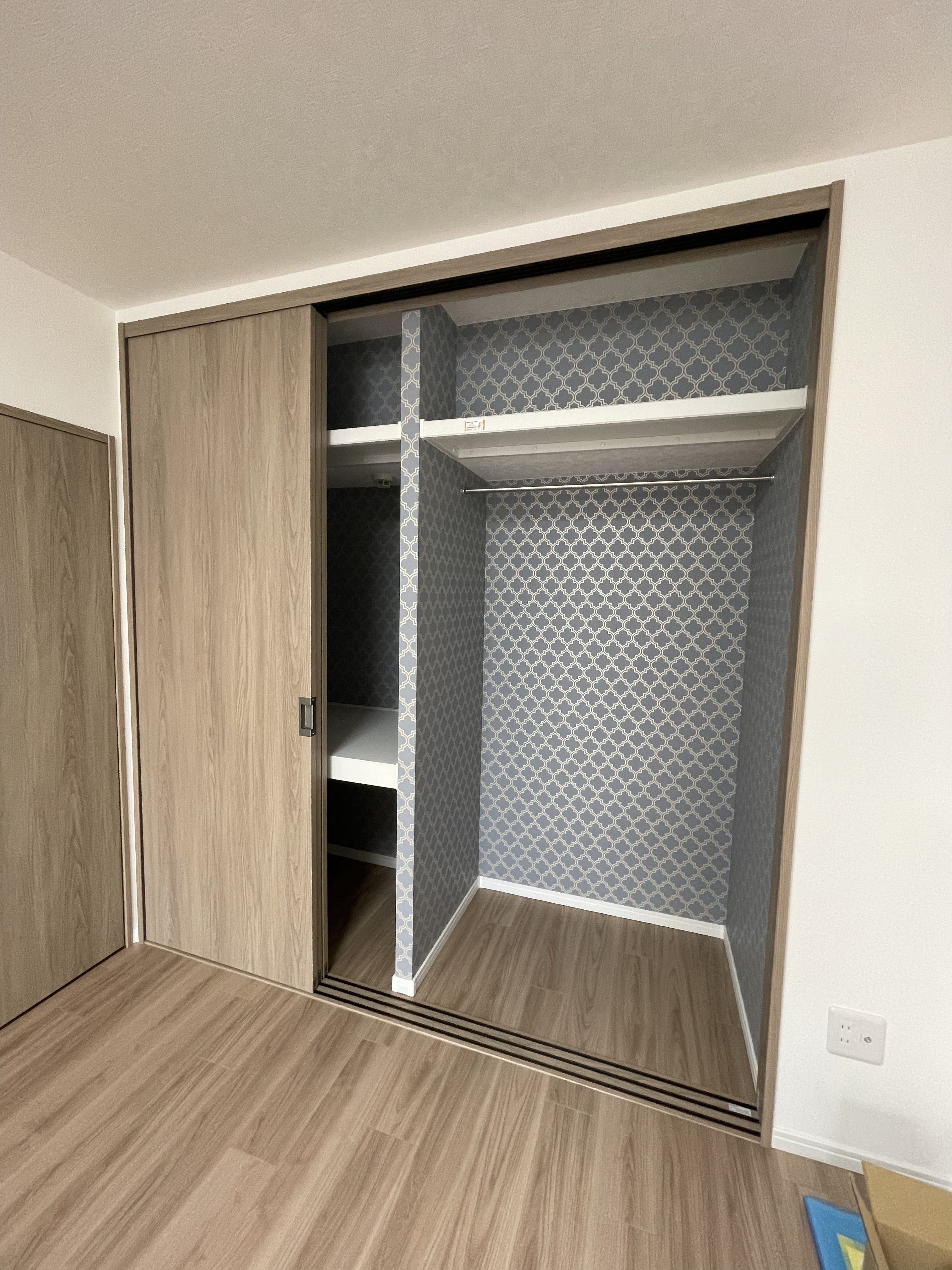 クローゼットも内部のみアクセントクロスを張り、扉を開けるとオリジナルの仕上がりとなりました!