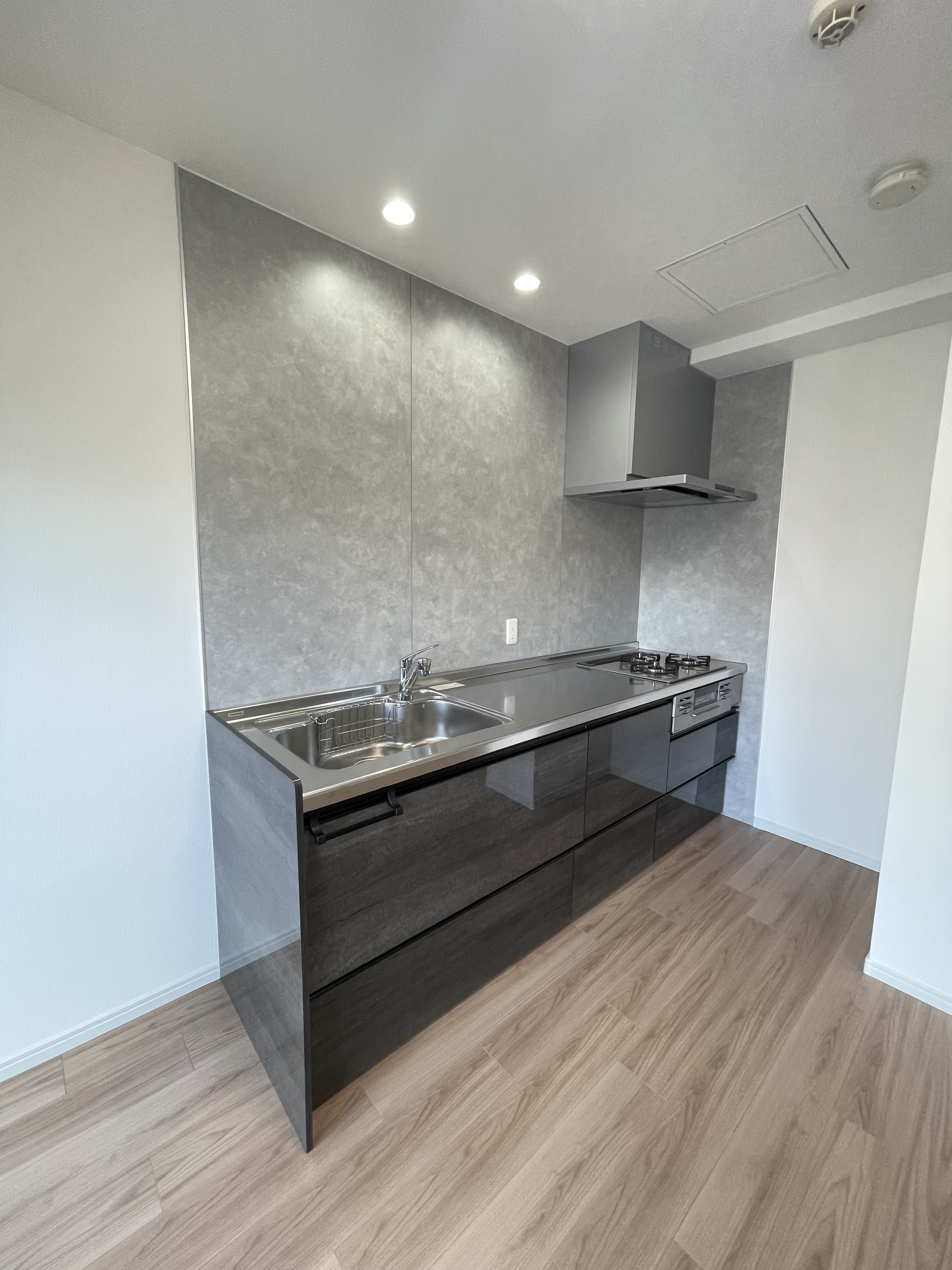 またキッチンはクリナップのラクエラを取付、ステンレスと内装がマッチした仕上げとなりました。