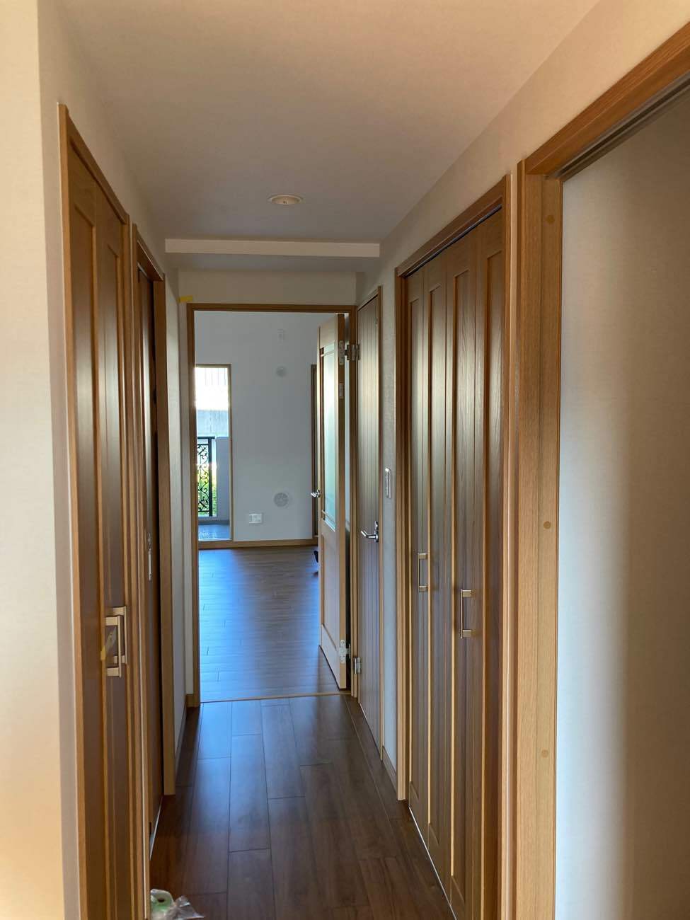 最近のマンションではこういった仕上げのマンションが多く、戸建てに比べるとリーズナブルに貼替ができます。