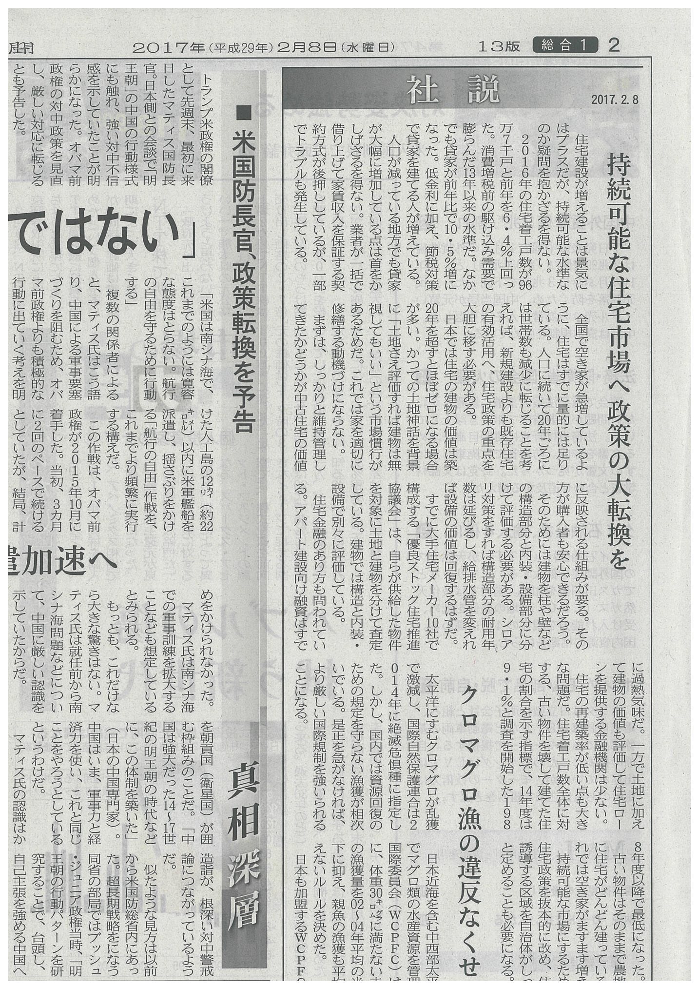 日経新聞 「持続可能な住宅市場へ政策の大転換を」