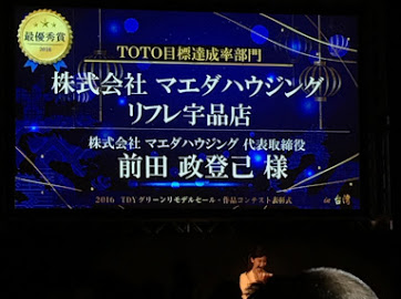 全国最優秀賞受賞 アドバイザーの菊田が壇上でTOTO喜多村社長から賞状を頂きました。![]()