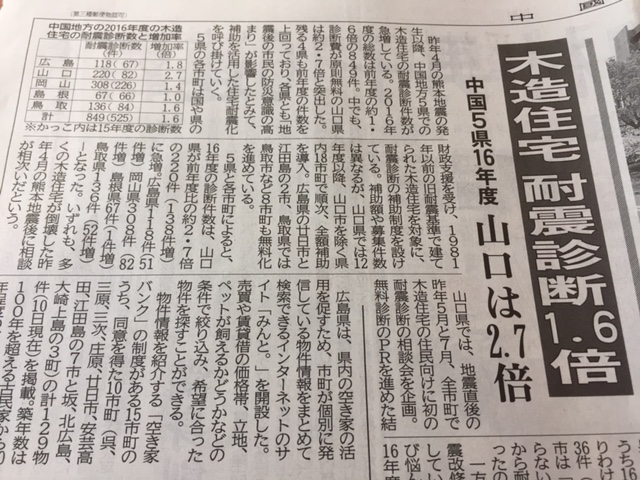 昨年4月の熊本地方の地震発生以降耐震診断件数が急増しています。
