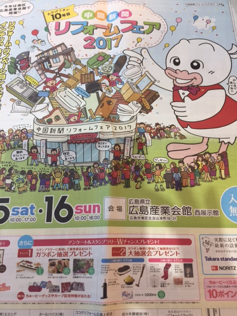 リフォームの情報が満載の中国新聞 リフォームフェア2017にぜひお越しください。