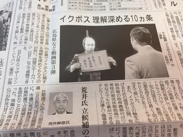 安心して仕事と子育てを両立できる環境を整備するには、男性の育児参画が欠かせないということで、男性の育児参画を応援し、働き方の見直しに取り組む企業経営者で「イクボス同盟ひろしま」が結成されました。