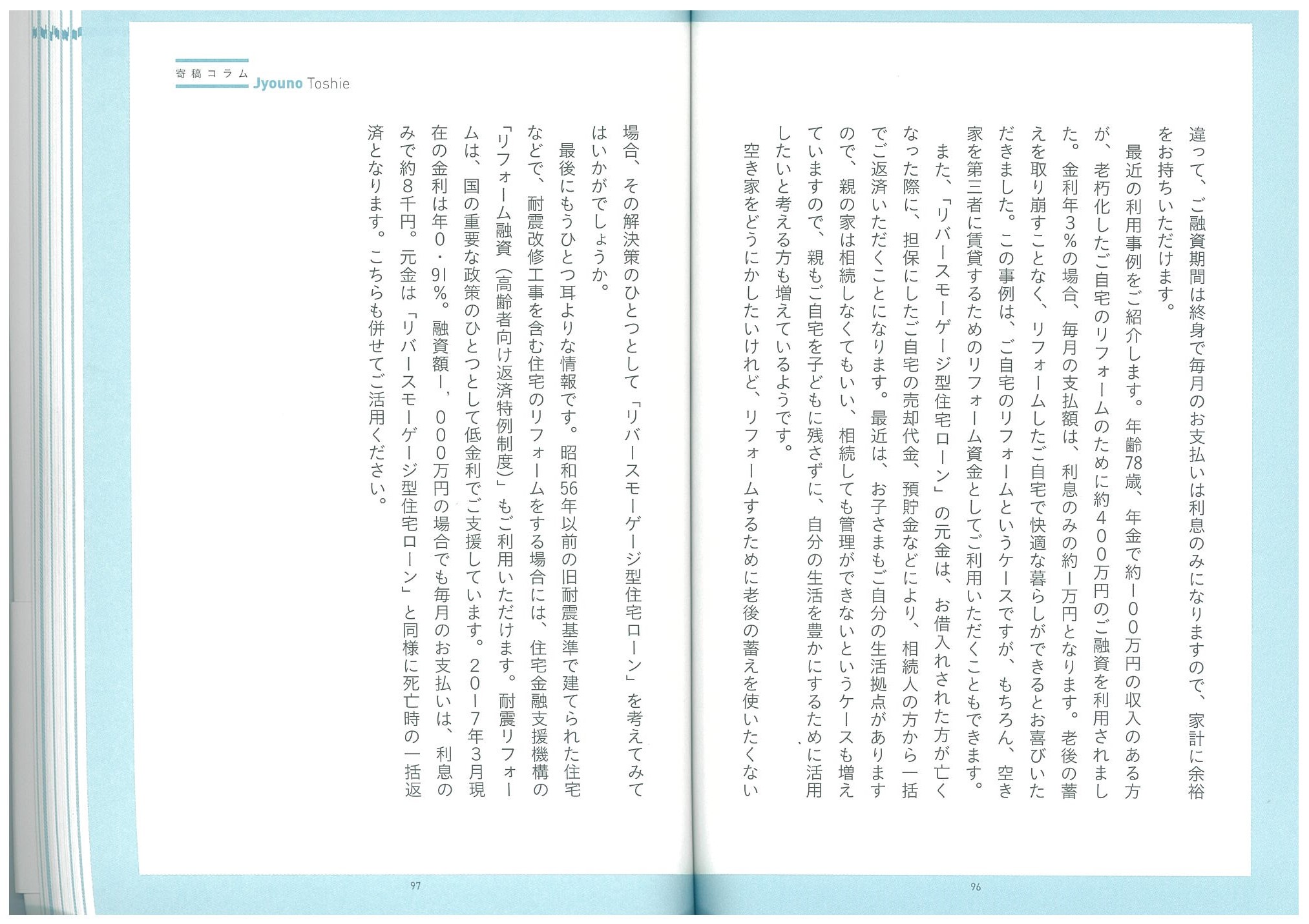 私の書籍「困った空き家を生きた資産に変える20の方法」にも住宅金融支援機構の城野支店長のコラムで、リバースモーゲージを使ってリフォームした事例が掲載されています。![]()