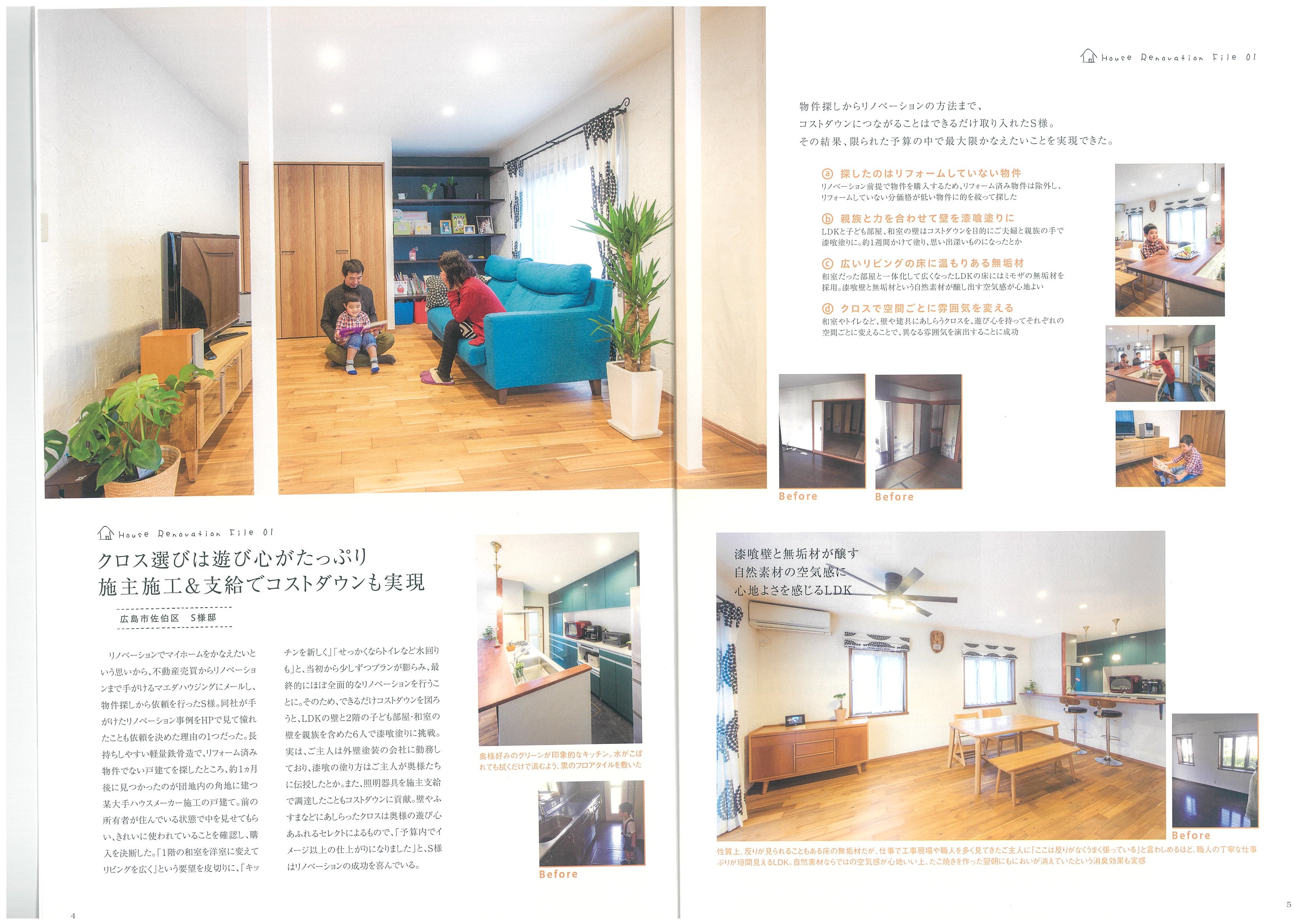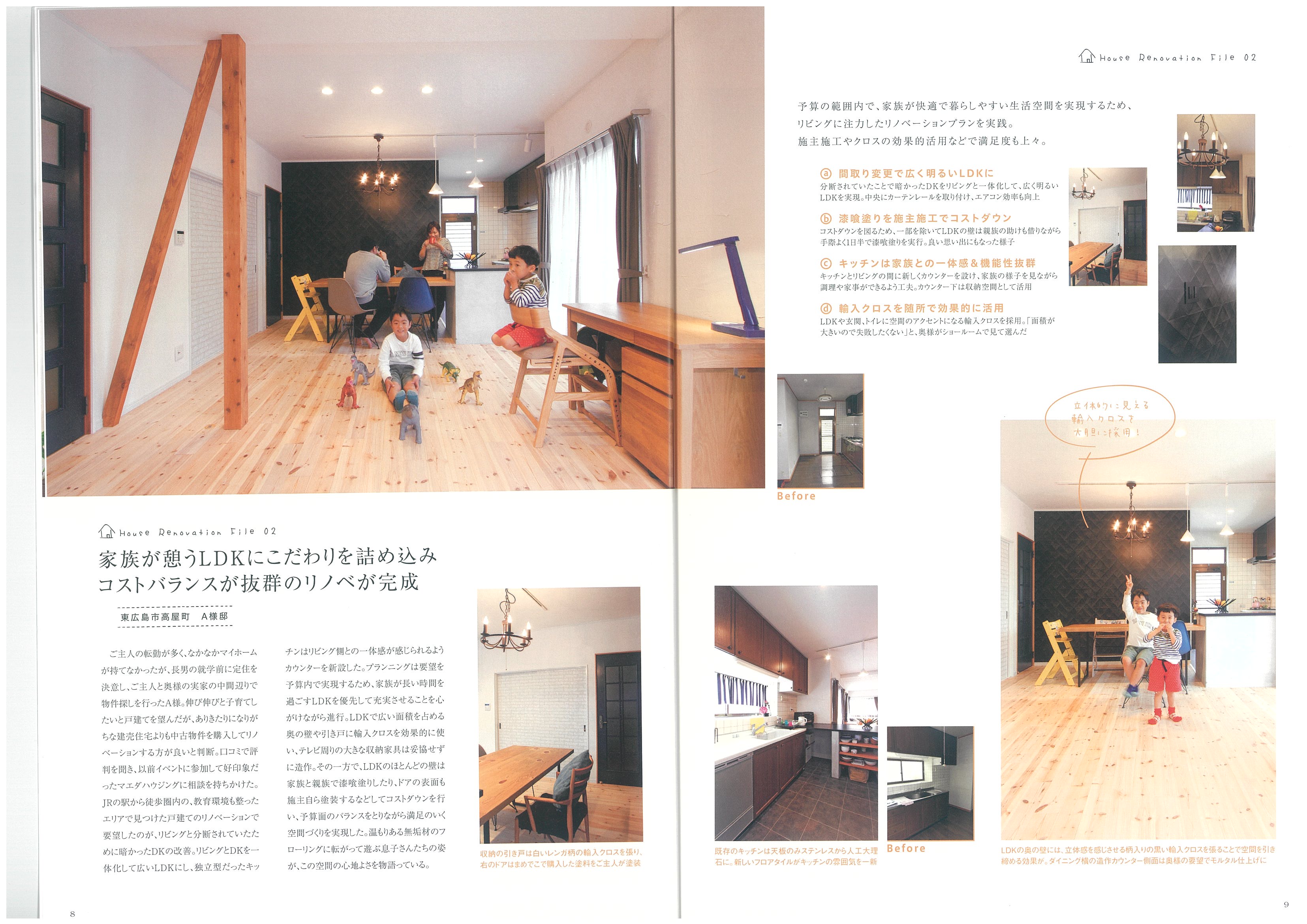 広島で中古を買ってリノベーションされた事例が掲載されています。