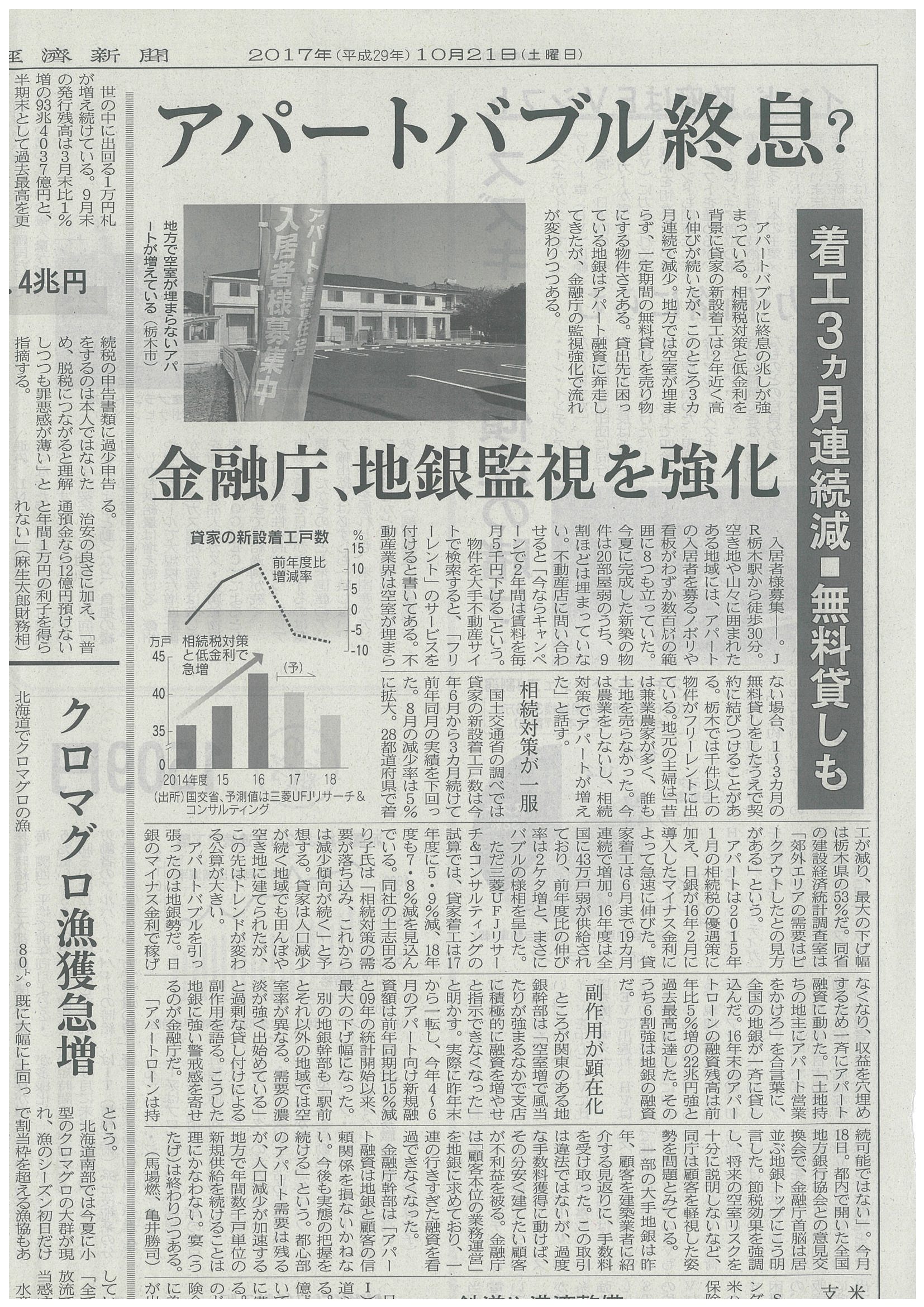 日経新聞 「アパートバブル終息」