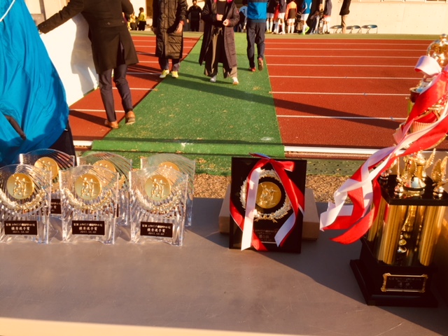 優秀、準優勝、優秀選手賞にトロフィーと盾とメダル。