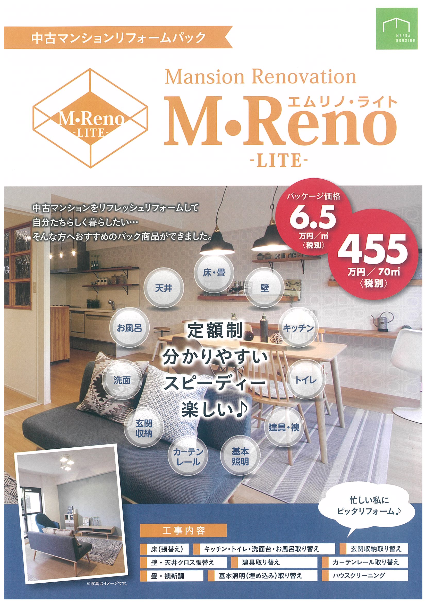 中古マンションリフォームパック「M・Reno LITE(エムリノ ライト)が発売されました。