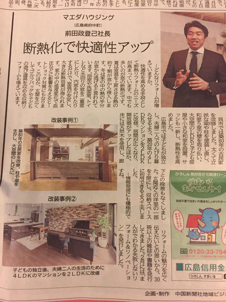 中国新聞「断熱性で快適アップ」 マエダハウジング