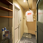 朝の忙しない時こそ、快適な洗面室で身支度をしたいもの。つい雑然としてしまう洗面周りは細部に拘り、ステンレスで統一された設備や小物で清潔感を生み出します。