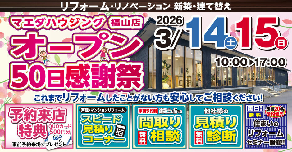マエダハウジング福山店 オープン50日感謝祭(終了しました)(終了しました)