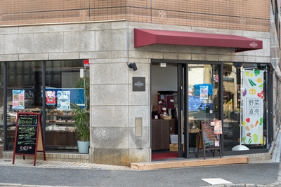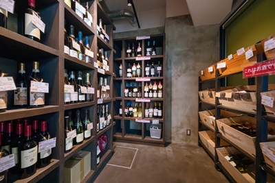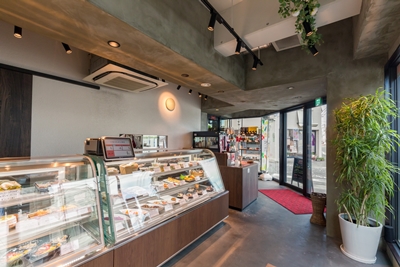 テイクアウト専門のワインとデリ(惣菜)のお店。店のコンセプトは「洋菓子店のようなお惣菜屋さん」。そのコンセプト通り、ガラス越しに店内をのぞくと、ショーケースにキッシュやサラダ、パテなどが華やかに並ぶ。店内の床をモルタルコンクリート「カチオン」で仕上げることで、欧米のデリカショップのような雰囲気を出している。このほかOishi吉山(安佐南区吉山)から届いた新鮮野菜コーナー、ワインセラー、奥にはキッチンを設置。元が飲食店の造りではなく、給排水が必要になったため、キッチン部分の床を一段上げて配管を通すことで調理を可能にした。