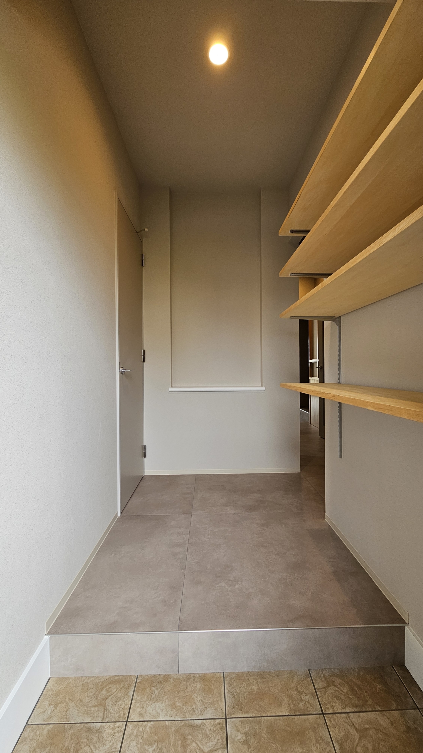 - 画像④ 広々玄関に加え収納棚も完備。目線の高さに棚を設けることで靴選びが楽に。