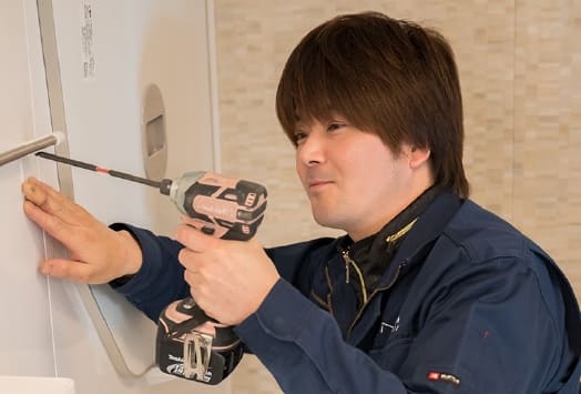 その後、水回りリフォーム専門店のリフレで営業として経験を積み、家の困りごと全般を請け負うサポーターズへ配属された。サポーターズで訪問するお宅は、水まわりや建具の不具合などトラブルの内容はさまざま。全く同じ現場はひとつもない。「幅広い知識と技術、そして適切な判断ができる経験が必要。あと何年住むのかなど、それぞれの家の状況を総合的に判断して、修理や取り替えなどの提案ができるように心掛けています」。 現在、1日平均4件、月に40件もの案件を担当。「たくさんの出会いがあるからこそ、たくさんのありがとうがいただける、おいしい仕事です」と笑顔を見せた。