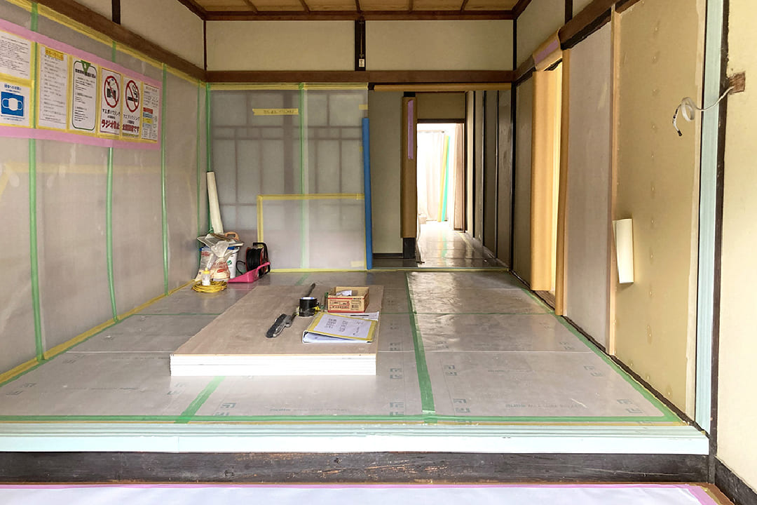 私たちは、養生の徹底、資材の整理整頓、張り紙なども含めて、きれいな現場づくりを実践しています。