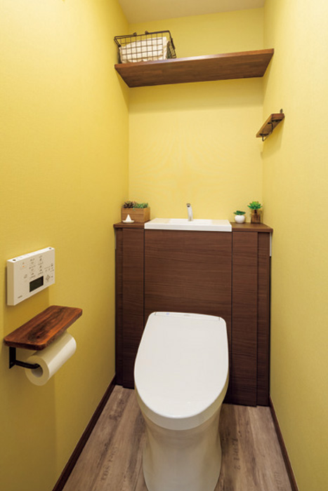 夫婦と子ども2人の家族構成で、築年数約24年のマンションに暮らしている方のトイレをリノベーションした事例です。トイレは設備を交換し、タンクを隠したことで、掃除が簡単にできるようになっています。床には、クッションフロアを採用し、壁のクロスをリフレッシュしたことで、明るく落ち着く空間を演出。