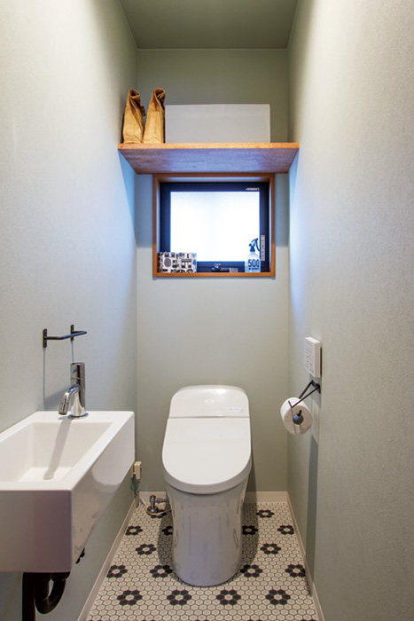 クールな質感と色調をベースにしたこちらのトイレ。夫婦と子ども2人の家族構成で、築年数約43年の戸建てのトイレをリノベーションした事例です。